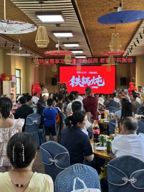 大家围坐一桌,闫哥带领团队敬酒开席,举起冰镇饮料:“把人做正,把房装好。做更美的衣柜,装更美的家”全场举杯,碰杯声、祝福声交织,这一刻,所有的努力都化作了心头的感动,感恩所有客户。